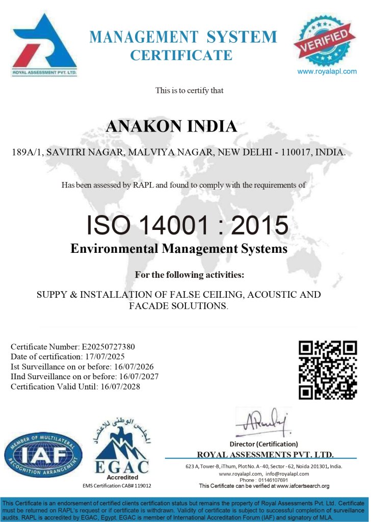 We founded on Anakon that Acoustics is the science of sound and a branch of physics. The scope of acoustics is not limited to phenomena that can be heard by humans and animals, it also includes phenomena with frequencies so low (infrasound) or so high (ultrasound) that cannot be heard by a normal person. Acoustics are fundamentally important to learning environments. Learning is intrinsically linked with communication, and aural (sound) communication is acoustics. Similarly, learning is about concentration, and external noise is a major distracting factor in education. As an Acoustical Consultant, Anakon believes that ceiling and acoustics should be sustainable, surprisingly functional, and remarkably beautiful.